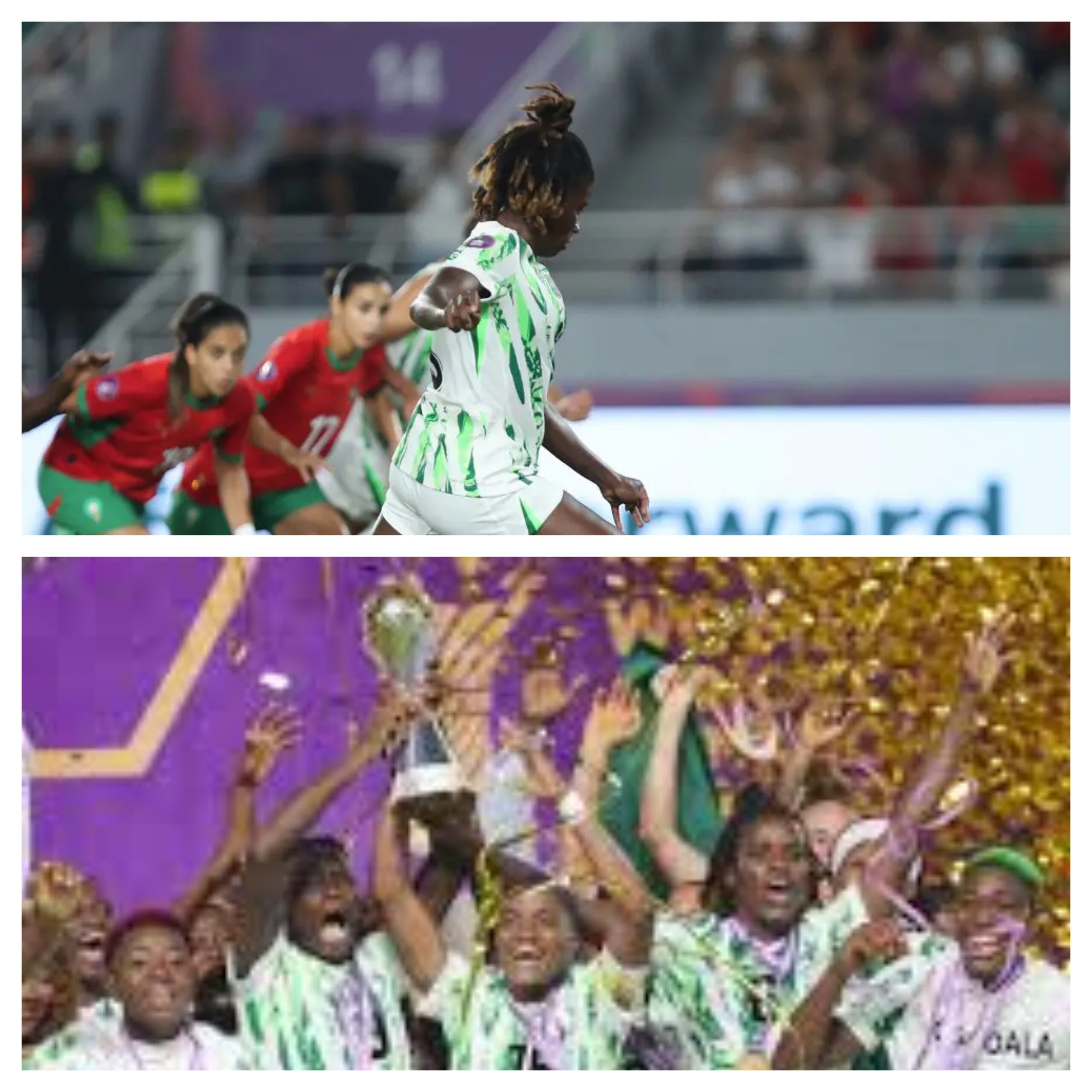 Nigeria’s Super Falcons came from two goals down to beat Morocco’s Atlas Lionesses 3-2 to lift the 2025 Women African Cup of Nations.