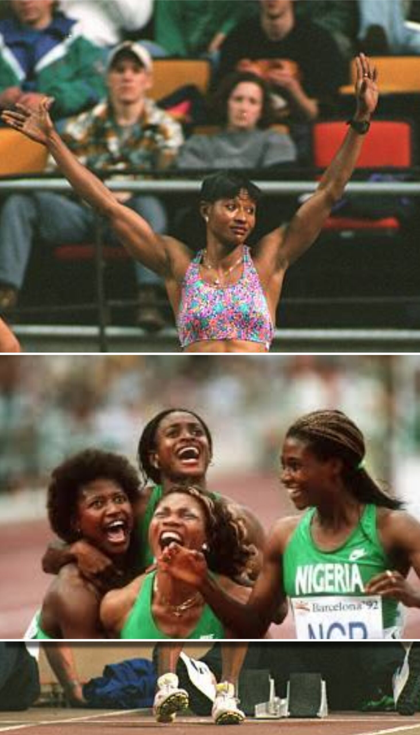 At the Barcelona 1992 Olympics the quartet of Mary Onyali, Christy Opara-Thompson, Beatrice Otondo and Faith Idehen raced into history by winning Nigeria’s first track and field medal and their iconic celebration remains an Olympic moment till date.