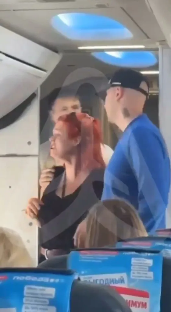 The incident occurred mid-flight on board a Pobeda Airlines flight from Novosibirsk to Moscow in Russia on August 23. The wild acting woman was seen punching the flight attendants in their face, before fellow passengers intervened to stop the assault and tied her up.