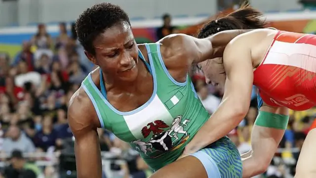 Odunayo Adekuoroye...Nigeria wrestler working at the CWG.