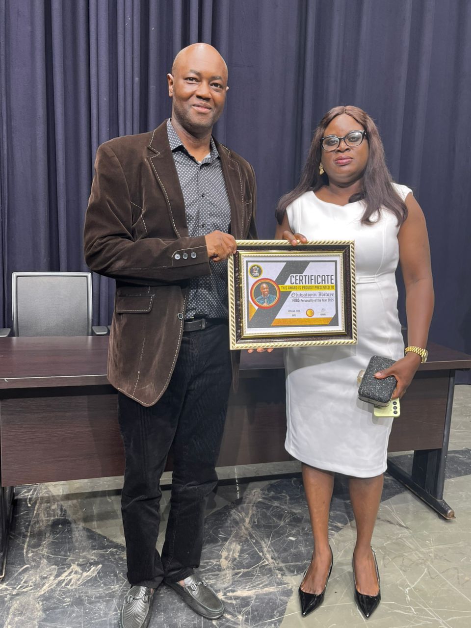 Amiable sports journalist Oluwatoyin Ibitoye has formally received the 2025 Family United by Sport (FUBS) Personality of the Year award. The presentation was held on Monday at the Hotsports Studios in Lagos with sports entrepreneur Taye Ige as chief host.